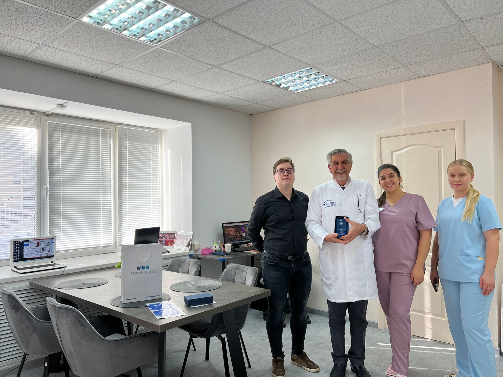 Сегодня в нашем учебном центре клиники «Сириус Дент» состоялась встреча с представителем компании по производству элайнеров «Еврокаппа». Компания выразила благодарность врачам-ортодонтам клиники.