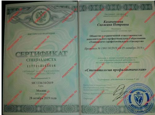 Cпециализация: Гигиенист стоматологический